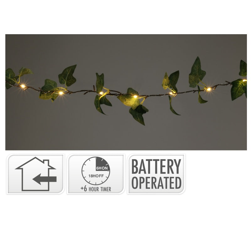 ΓΙΡΛΑΝΤΑ ΠΡΑΣΙΝΑ ΦΥΛΛΑ 30LED ΘΕΡΜΟ ΛΕΥΚΟ ΔΙΑΦ.ΚΑΛΩΔΙΟ 2.9m