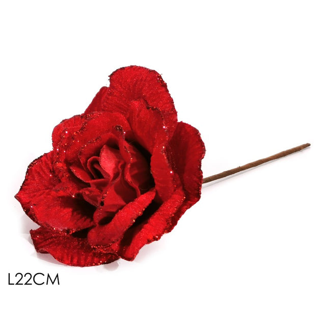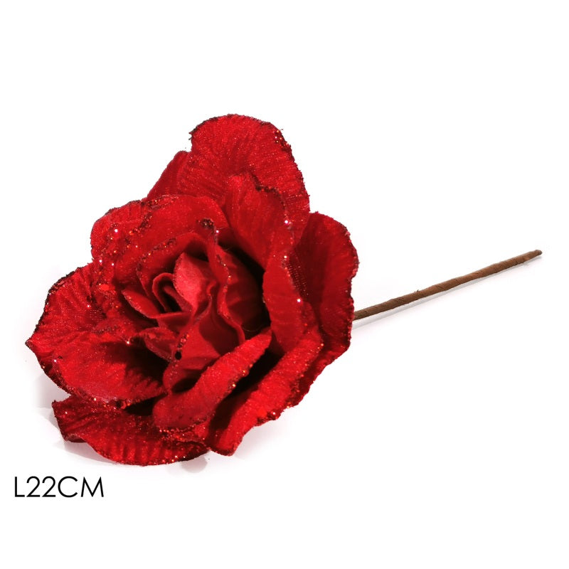 ΛΟΥΛΟΥΔΙ ΚΛΑΔΑΚΙ ΤΡΙΑΝΤΑΦΥΛΛΟ ΚΟΚΚΙΝΟ GLITTER 22cm