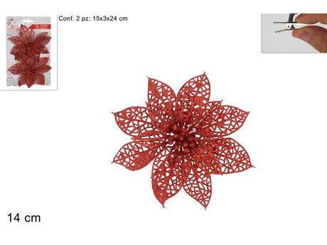 ΛΟΥΛΟΥΔΙ ΜΕ ΚΛΙΠ ΣΕΤ 2ΤΕΜ ΚΟΚΚΙΝΟ GLITTER 14εκ XMAS