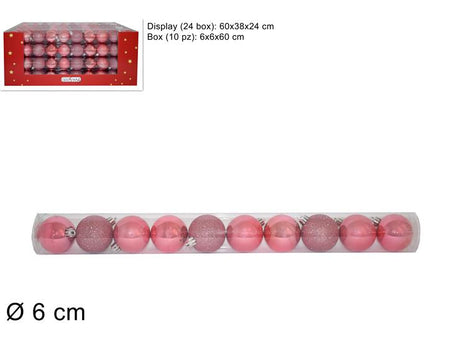 ΜΠΑΛΑ XMAS 10ΤΕΜ ΡΟΖ 6εκ GLITTER