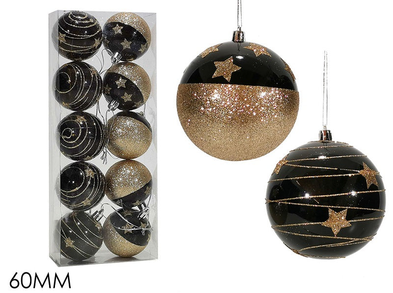 ΜΠΑΛΑ XMAS 10ΤΕΜ ΜΑΥΡΟ ΧΡΥΣΟ 6εκ
