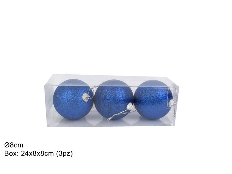 ΜΠΑΛΑ XMAS 3ΤΕΜ ΜΠΛΕ 8εκ GLITTER