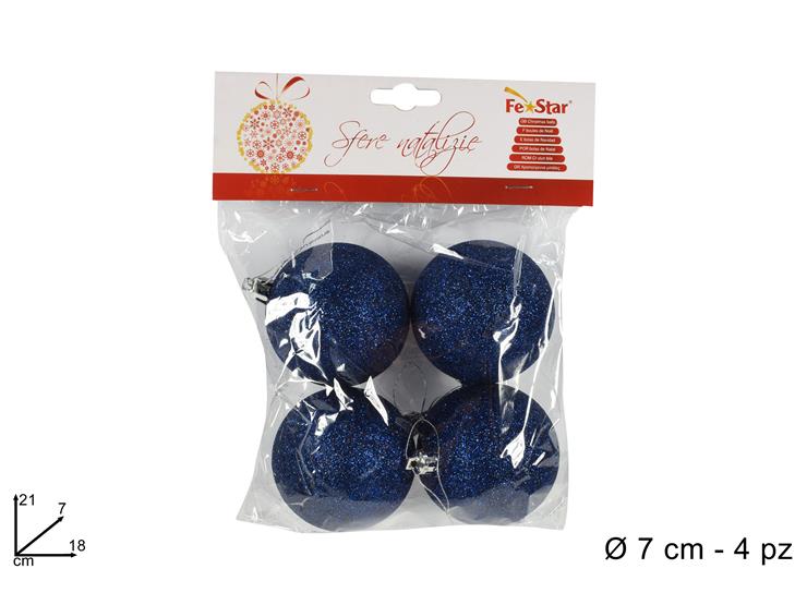 ΜΠΑΛΑ XMAS 4ΤΕΜ ΜΠΛΕ 7εκ GLITTER