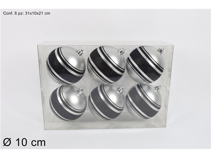 ΜΠΑΛΑ XMAS 6ΤΕΜ ΑΣΗΜΙ ΜΑΥΡΗ 10εκ GLITTER