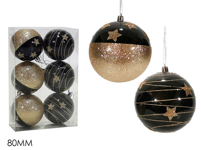ΜΠΑΛΑ XMAS 6ΤΕΜ ΜΑΥΡΟ ΧΡΥΣΟ 8εκ