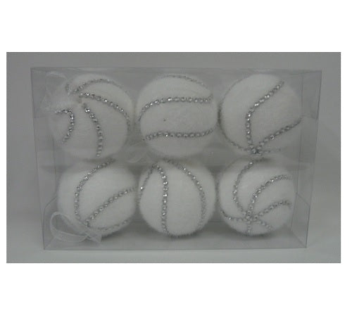 ΜΠΑΛΑ XMAS 6ΤΕΜ 8εκ ΛΕΥΚΗ ΜΕ ΣΤΡΑΣ